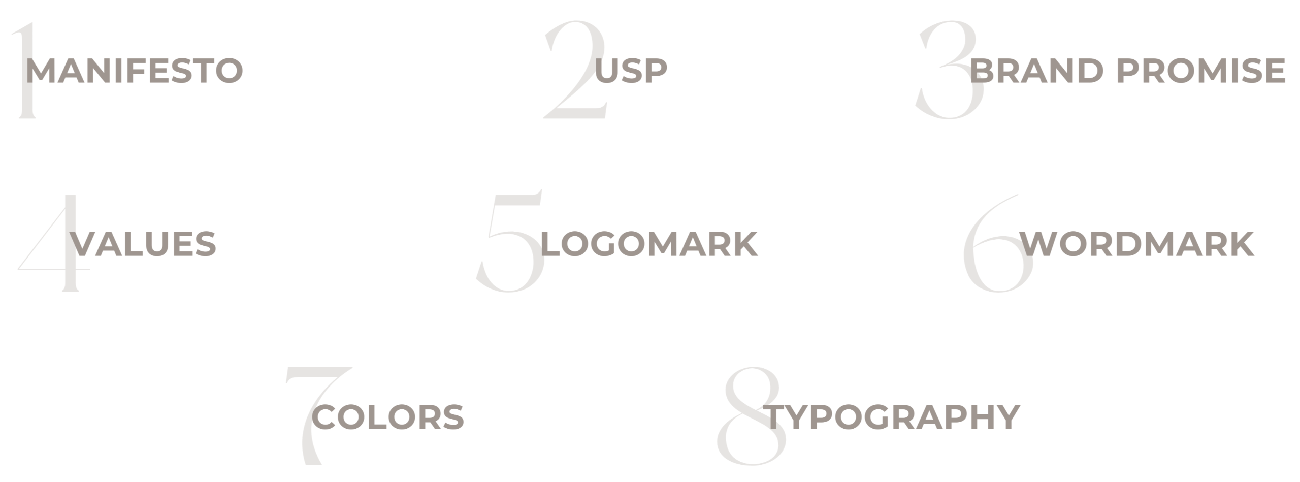 We transform your vision into a polished, comprehensive brand guide with the following 8 core-pieces.